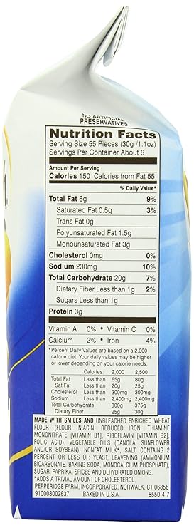 Goldfish crackers nutrition facts label. Our 15 Favorite Goldfish Crackers Nutrition Facts Of All Time Our 15 Favorite Goldfish Crackers Nutrition Facts Of All Time. Fish is just one of the best sources of lean healthy protein and pollutants-free Omega sixes. It is all in good shape fish, yet choosing the appropriate kind with a flavor that praises your favorite seasonings, herbs and spices. Calories in Pepperidge Farm Goldfish Original Crackers and Nutrition Facts 5g. Carbs. 20g. Protein. 3g. There are 140 calories in 55 pieces (30 g) of Pepperidge Farm Goldfish Original Crackers. Calorie breakdown: 33% fat, 58% carbs, 9% protein. Goldfish Crackers Nutrition Facts & Calories NUTRITION INFORMATION Amounts per Custom Food (30g) Footnotes for Goldfish Crackers Source: Nutrient data for this listing was provided by Custom. Each " ~ " indicates a missing or incomplete... PDF Goldfish® Snack Crackers - Cheddar 14367 300/0.75 Oz. Total Fat 3.5g 5% Saturated Fat 0.5g 3% Polyunsaturated Fat 0.5g Monounsaturated Fat 1.5g Cholesterol 5mg 2% Sodium 180mg 8% Total Carbohydrate 14g 5% Dietary Fiber 1g 4% Sugars 0g 0% Protein 2g 4% Vitamin A 0% Vitamin C 0% Calcium % Iron % Vitamin E 0% Thiamine 0% Magnesium 0% Zinc 0% * Percent Daily Values are based on a 2,000 calorie diet.