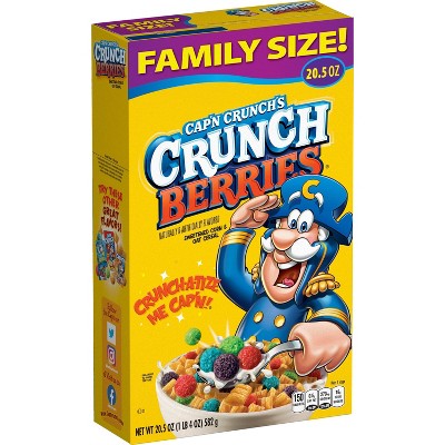 Calories in Cap'n Crunch Crunch Berries | CalorieKing There are 105 calories in 1 3/4 cup (0.9 oz) of Cap'n Crunch Crunch Berries. You'd need to walk 29 minutes to burn 105 calories. Visit CalorieKing to see calorie count and nutrient data for all portion sizes.