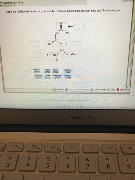 Label the functional groups in the molecule. › panoramic › indexPharmaCircle This website uses cookies to help provide you with the best possible online experience. Please read our Terms & Conditions and Privacy Policy for information about ... EOF Functional Groups in Organic Chemistry | ChemTalk The hydrocarbon functional groups are alkanes, alkenes, alkynes, and aromatic hydrocarbons (arenes). Oxygen-Containing Functional Groups Groups containing oxygen may have a carbonyl (carbon-oxygen double bond) or not. The functional groups without carbonyls are ethers, alcohols, and epoxides. Organic Chemistry Functional Groups Guide + Cheat Sheet - Leah4sci To recognize this group in organic molecules, simply look for a line to F, Cl, Br, or I Naming Alkyl Halides Since halogens are substituents rather than functional groups, we include their name in the prefix. Take the full halogen's name, drop the ending and add 'o'. For example, iodine becomes 'iodo', chlorine becomes 'chloro'.