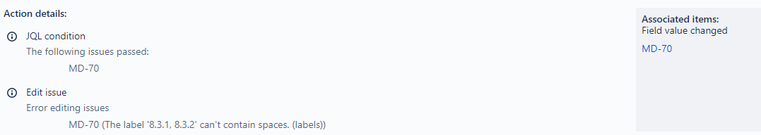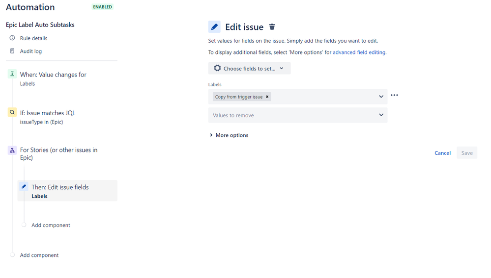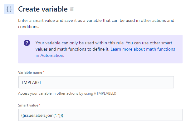 Solved: Issue with labels in Automation - Atlassian Community 9 Dec 2021 — Solved: I am trying to create an automation rule where each time an issue is moved to a new sprint, a new label is added with the name of that. Solved: Add a label using Automation, without changing/rem... Using the Automation add-on, I want to have a rule/action such that on a specific transition, a label gets added to the labels field. Automation to add labels based on text present in This is the easy part, using Edit Issue, select Labels, the ... option to Add/Remove labels, and then just enter your smart value of {{myLabel}} from the branch ...