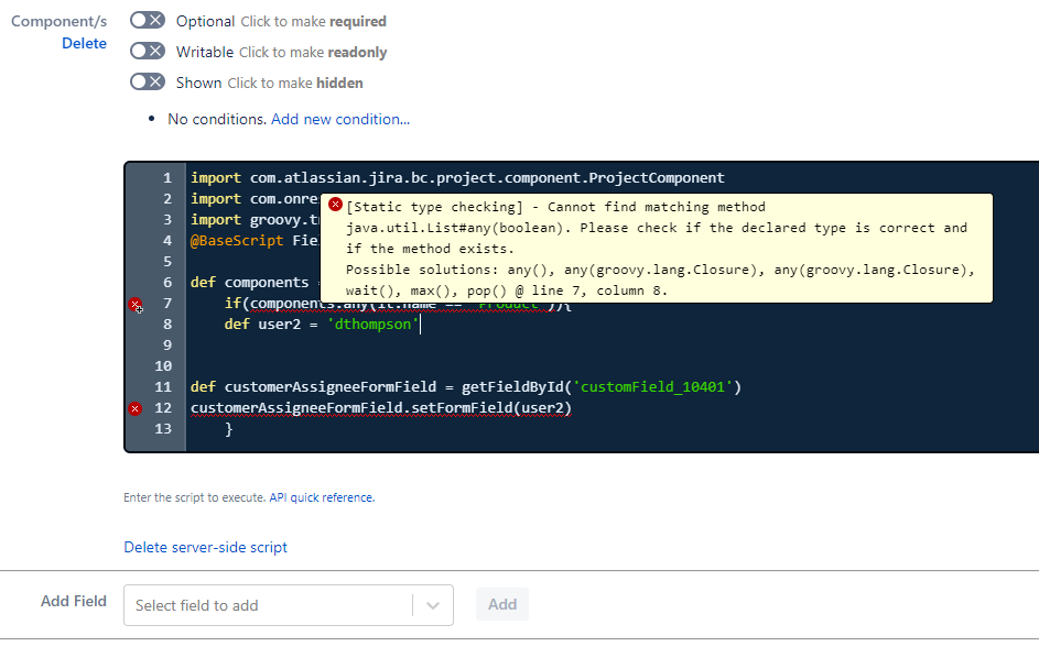 Jira component field