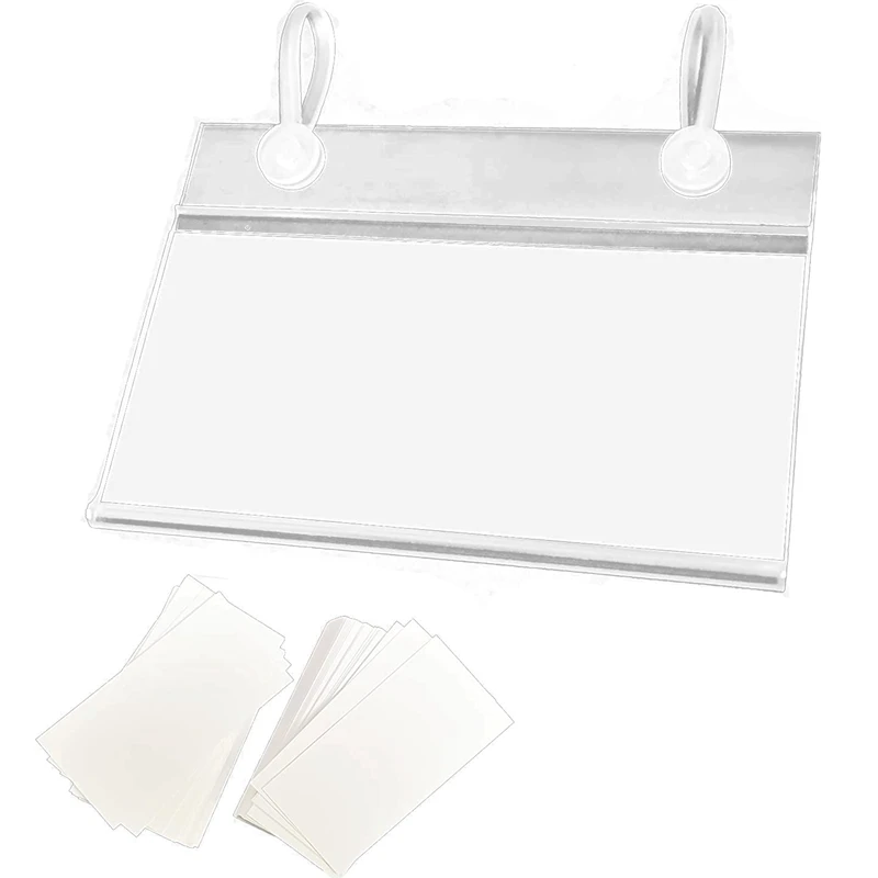 50pcs Clear Plastic Label Holders Clip On Sign Display Holder for Wire Shelf Price Card Tag, Transparent Label Holders with Papers Labels Clip On for ...