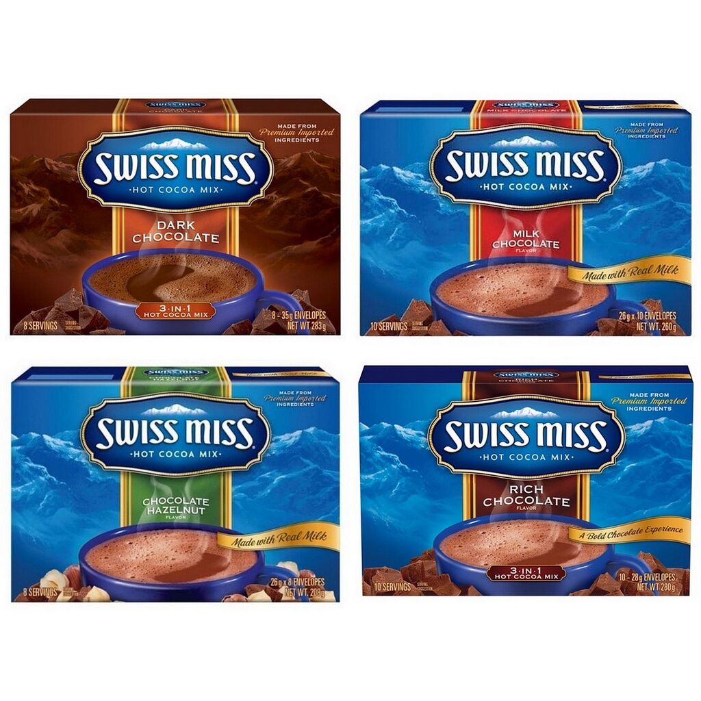 Hot Cocoa & Hot Chocolate Mixes | Swiss Miss Hot Cocoa & Hot Chocolate Mixes | Swiss Miss Classics Rich and creamy, it's the original hot cocoa you first fell in love with. Classics Non-Dairy Chocolate Flavored Hot Cocoa Mix Buy Now Milk Chocolate, Family Pack Buy Now Swiss Miss Variety Pack Buy Now Cinnamon Toast Crunch Cinnamilk Buy Now Unicorn Marshmallows Buy Now Lucky Charms Marshmallows