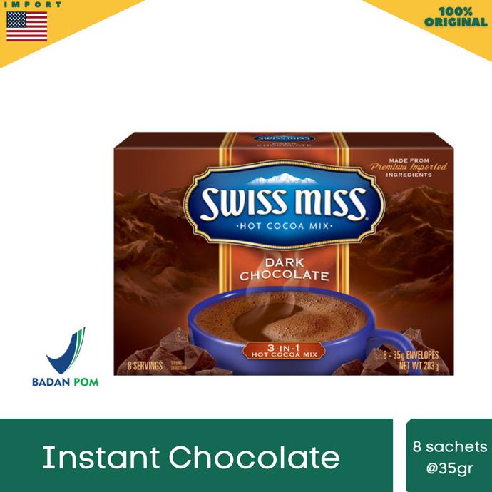 Nutrition Facts for Hot Chocolate, Swiss Miss and Cocoa Powder | livestrong Swiss Miss Hot Chocolate is a brand of instant hot chocolate made from dark European cocoas. Depending on your nutritional needs or preferred taste, you can find a variety of products under the Swiss Miss Hot Chocolate label, including: Advertisement Milk chocolate with or without marshmallows; No sugar added; Reduced calorie; Non-dairy;