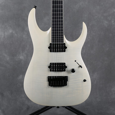 Ibanez Iron Label RGAIX6FM - White Frost Flat | Sweetwater Ibanez RGAIX6FM Iron Label Solidbody Electric Guitar Features: Beautiful archtop solidbody that's built for metal Mahogany body capped in beautiful flamed maple 2 articulate DiMarzio Fusion humbucking pickups Coil tap switch expands the guitar's tonal possibilities Tuning stability via the Gibraltar Standard II hardtail bridge