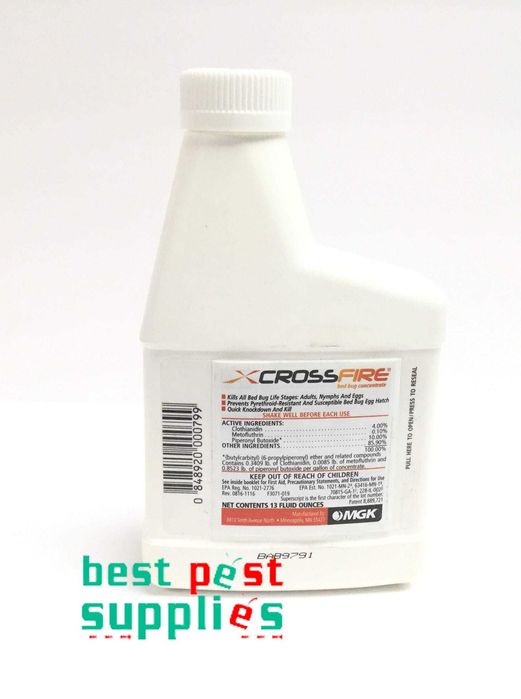Crossfire Bed Bug Concentrate 13oz - Walmart.com Crossfire Bed Bug Concentrate Details:Crossfire is the newest formulation by industry leader MGK developed specifically for bedbugs. It combines 2 active ingredients (Clothianidin - 4% and Metofluthrin - 0.1%) plus a synergistic PBO (Piperonyl Butoxide - 10%). ... and adultsAlways read and follow label directions when using any product. ...
